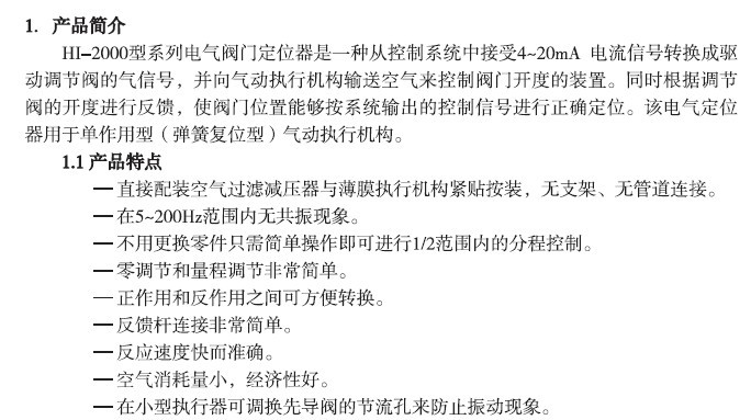 HI-2000型系列电气阀门定位器说明书